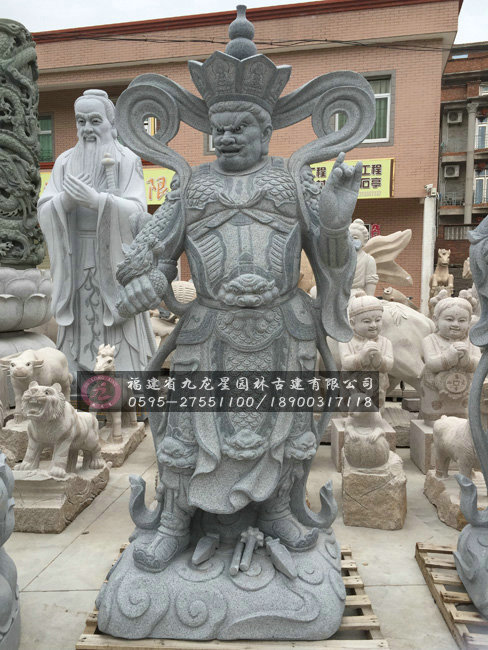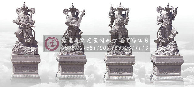 石雕四大天王采用優(yōu)等石材精雕細(xì)琢而成。整尊雕像身軀魁偉,氣勢(shì)威武,兩腿以半弓步橫跨在流云上,顯示出叱咤風(fēng)云,拔山蓋世的英雄氣概。