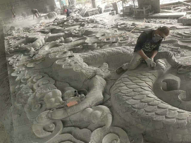 (浮雕雕刻之前需要在石材上繪出相應圖案)