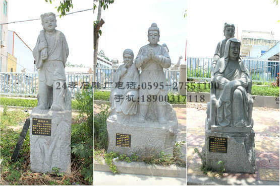 《二十四孝》的編者是元代福建延平府尤溪縣的郭居敬。他曾選輯虞舜以下二十四位孝子的感人故事,為每個故事配上一首詩,用來做兒童的啟蒙讀物,《二十四孝》的名稱便是由此而來。《二十四孝》故事編定成書之后,古人把孝道列為社會教化的一項重要內容,鼓勵人們“老吾老以及人之老,幼吾幼以及人之幼”,已經在我國流傳數百年,幾乎達到了家喻戶曉的程度,對國人的倫理道德產生了不可低估的影響。九龍星園林古建加工的二十四孝石雕像栩栩如生,將中國古代的孝賢及其事跡呈現出來,就是為了讓孝道文化這一傳統文化在新時代得以發揚光大,進一步弘揚和傳承中華民族尊老、敬老、愛