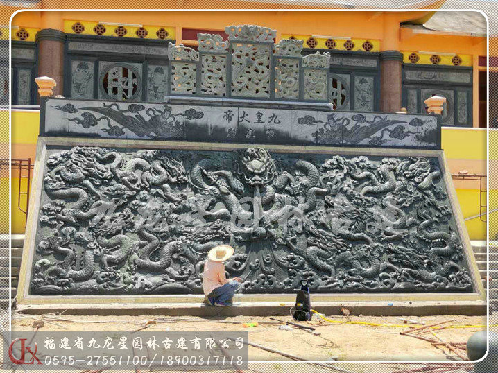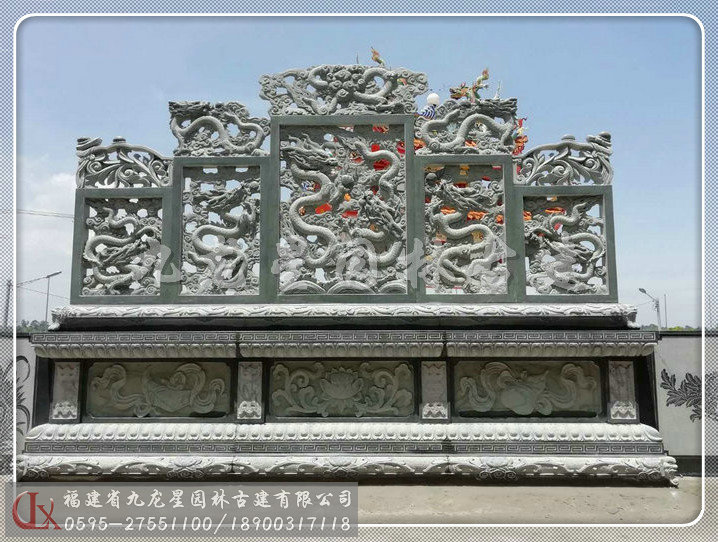 青石石雕屏風(fēng)雙面雕龍安裝