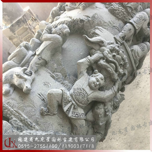 百子柱石雕加工局部細節圖來源于九龍星園林古建。