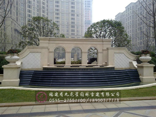 龍頭獅子頭吐水小噴泉歐式景墻石雕裝飾