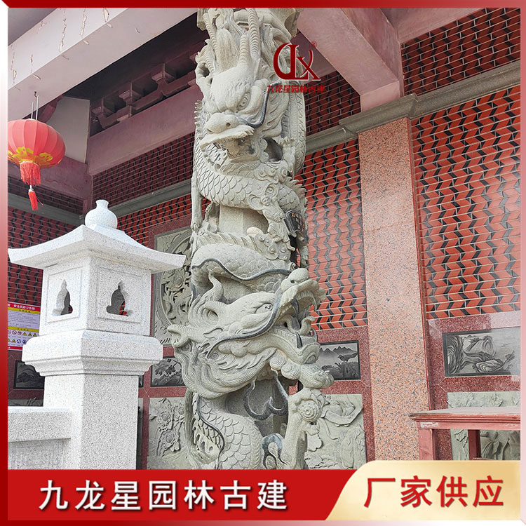 祠堂石龍柱 門口圓柱子裝飾 材質款式可定制 九龍星