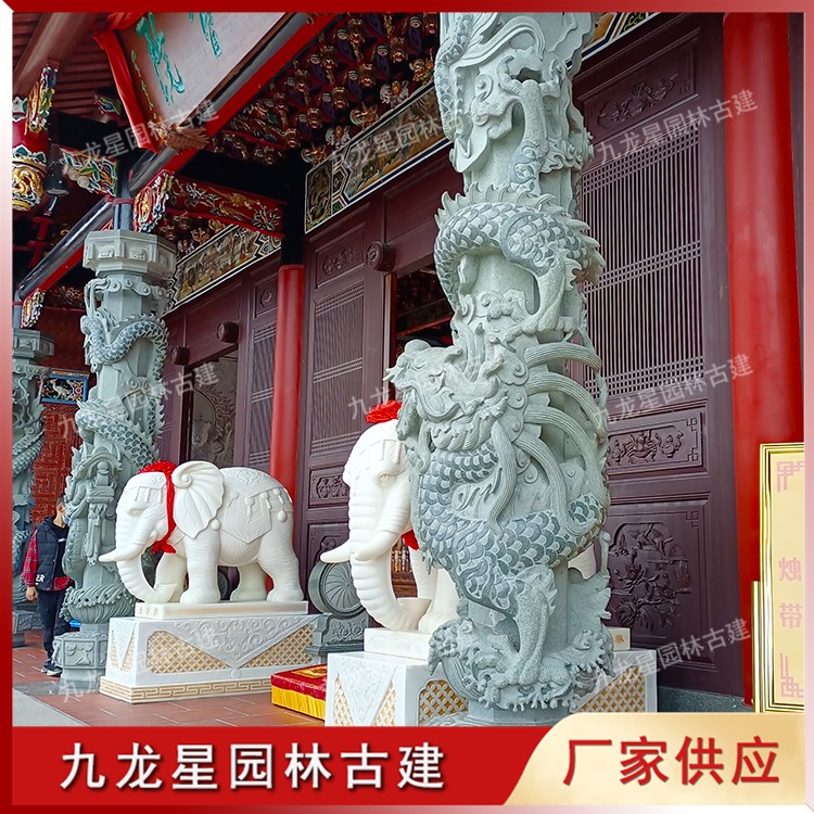 盤龍柱石雕 青石雕龍柱 寺廟石雕龍柱的應用 九龍星