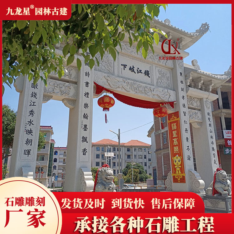 石牌坊大門 村口石雕牌坊廠家定制 九龍星